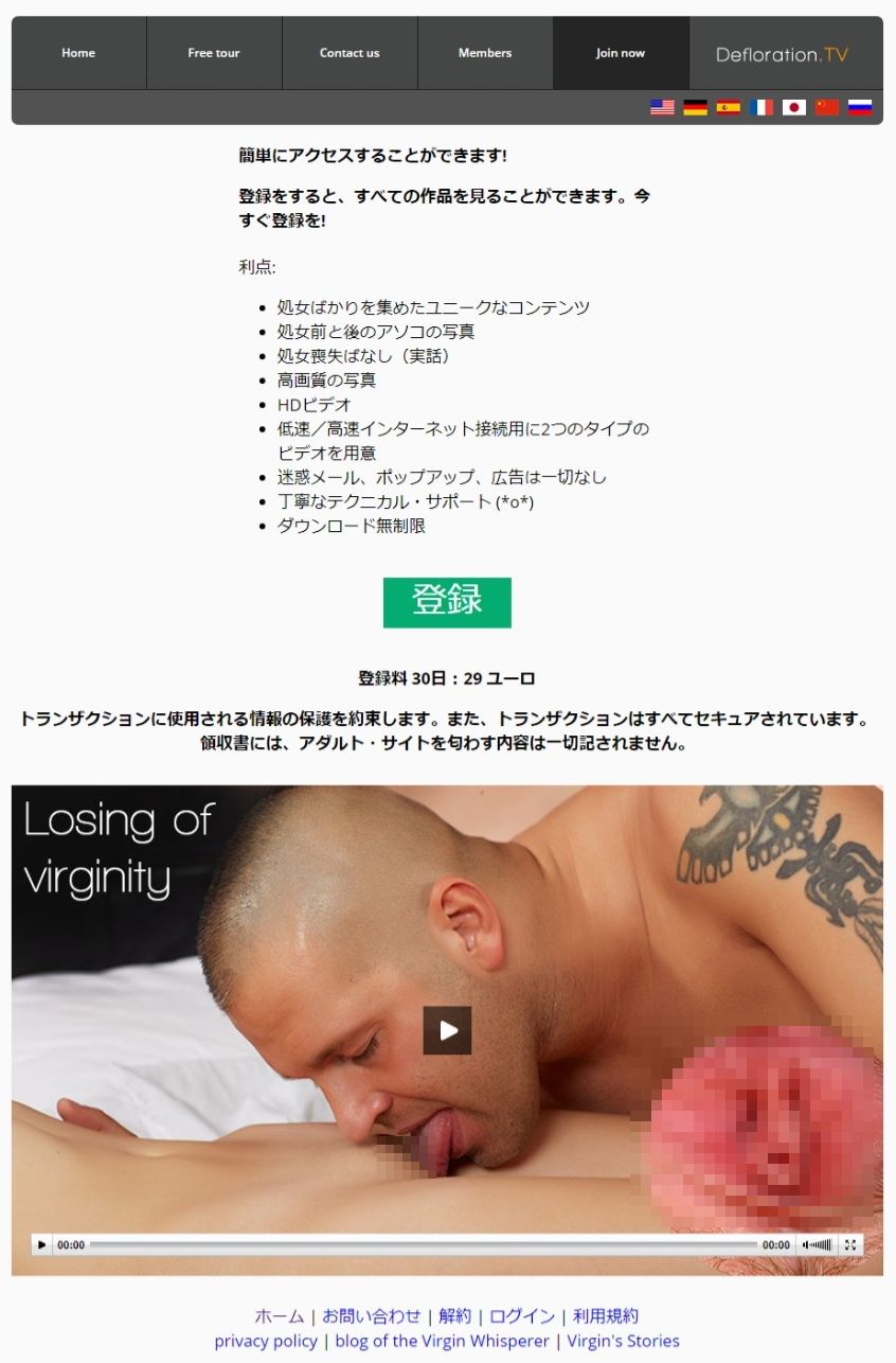 入会の方法はdefloration.tvと同様です。